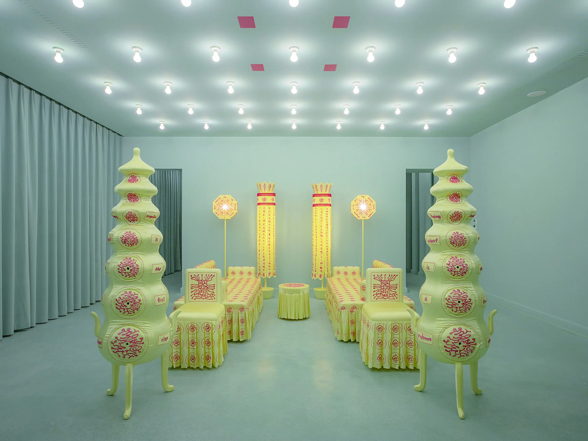 Ordinance of the Subconscious Treatment (心伺令) is a collection of neuroaesthetic objects and environments that investigates the themes of mental health and contemporary Chinese culture. Each room is a manifestation of a mental state. Intended to be both provoking and hypnotic, intimidating and soothing, the rooms and objects interweave religious and folkloric references with scientific and narrative cues informed by contemporary mental health practices.